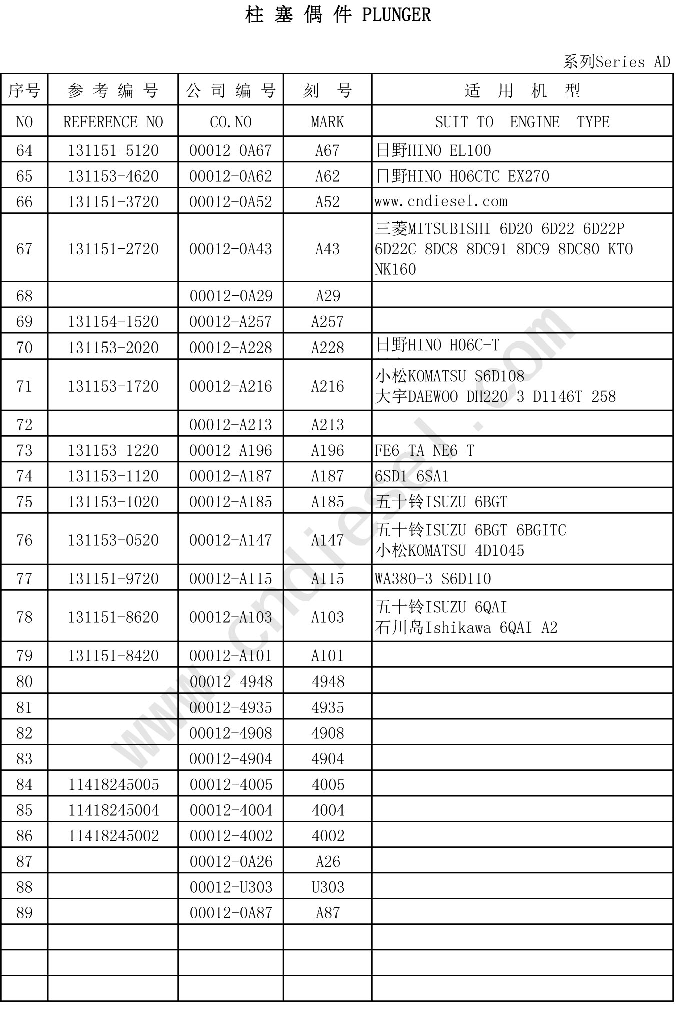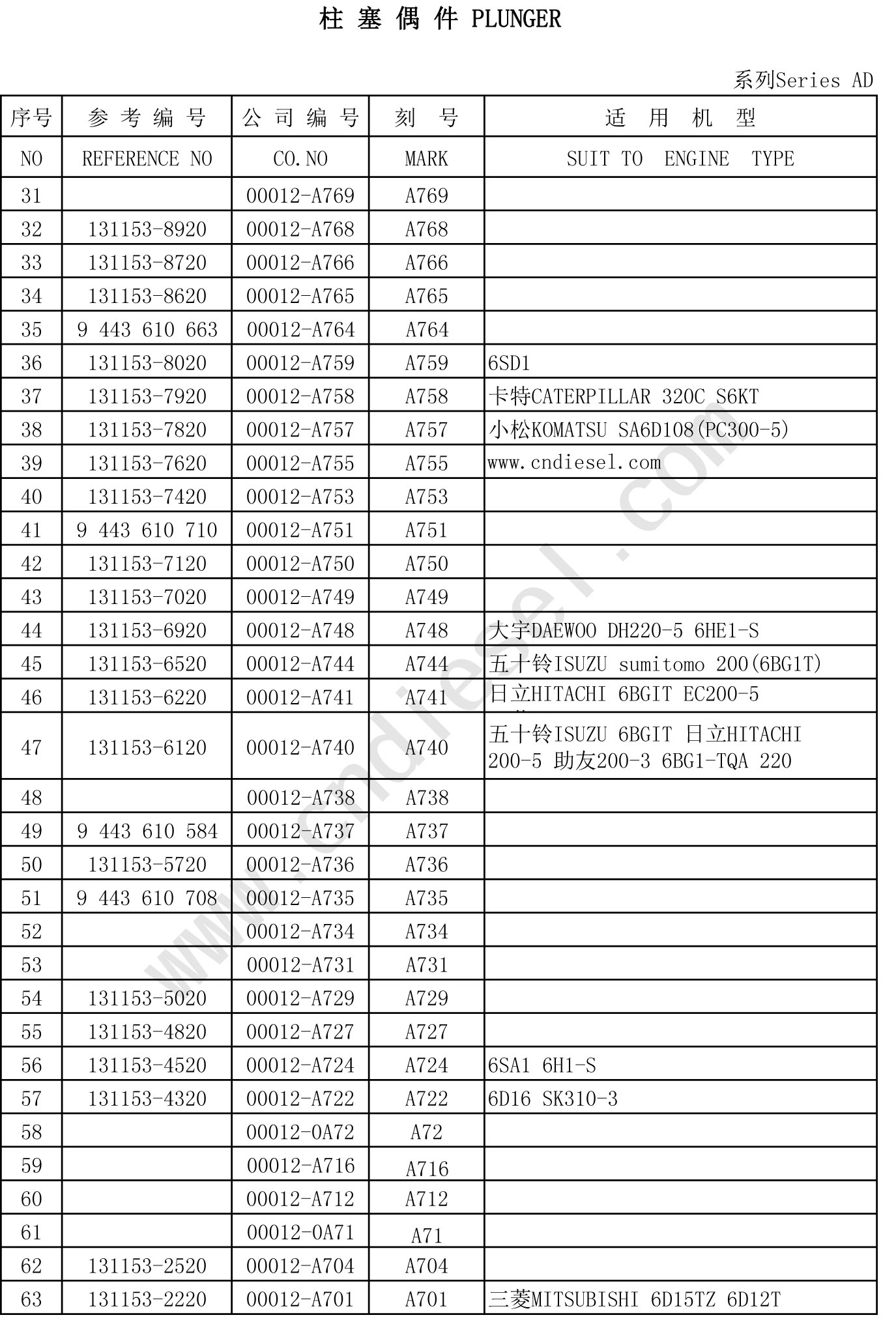 A ,AD ,K, P, T -PLUNGER-512-506-53